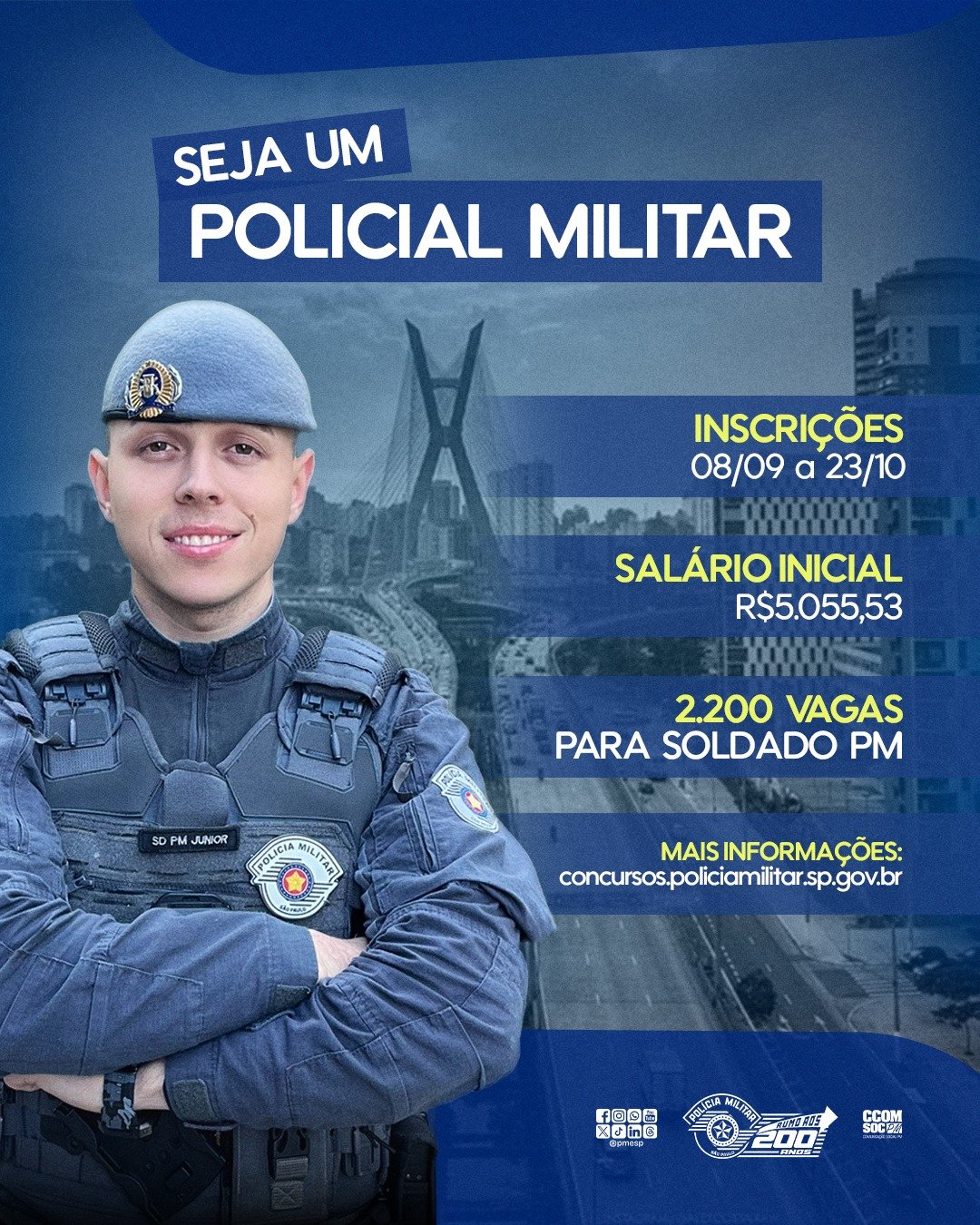 Começam hoje, 08, as inscrições para o concurso Sd PM 2º Cl da Polícia Militar do Estado de São Paulo!