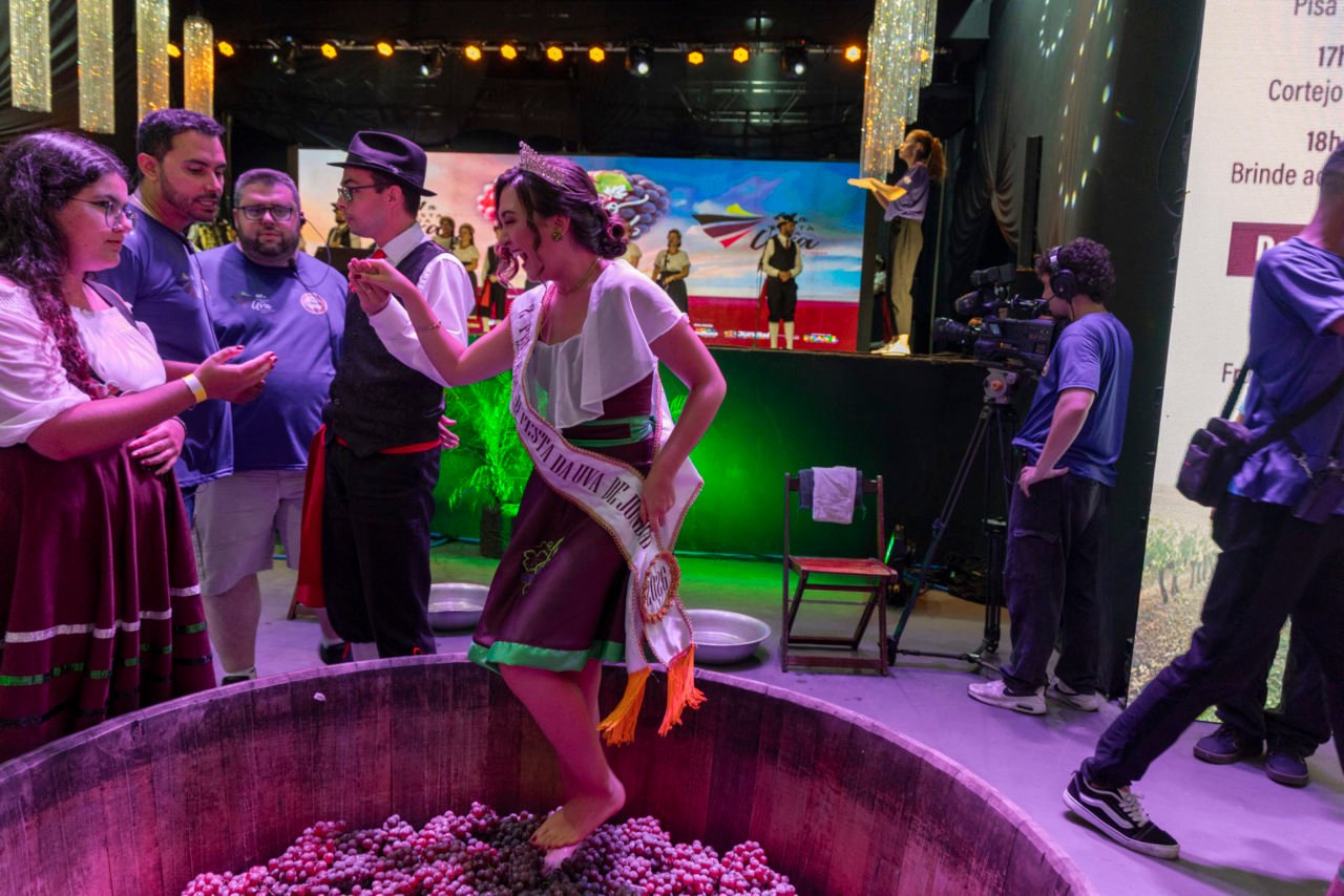 O público poderá acompanhar novamente o tradicional Cortejo da Uva, que percorre o parque em diferentes momentos do fim de semana, além da simbólica Pisa da Uva, uma das manifestações mais marcantes da festa, que remete às origens da produção agrícola e vitivinícola de Jundiaí, e finalizar a tarde com o tão esperado Brinde ao Pôr do Sol.