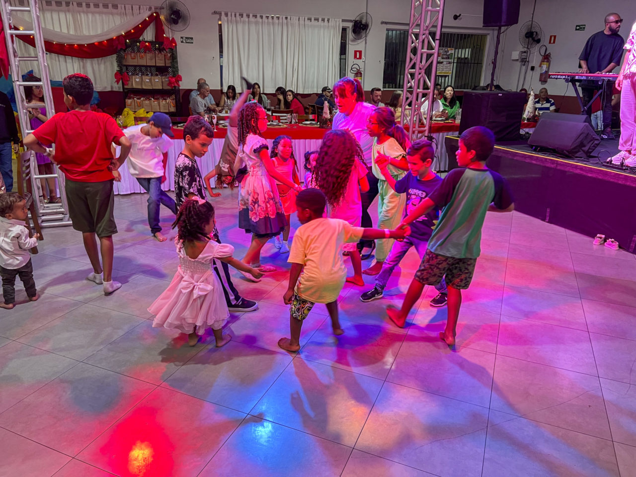 Com um clima de alegria e emoção, a celebração começou por volta das 20h do dia 24 de dezembro, com música ao vivo e um jantar preparado com carinho para todos os presentes. Além disso, houve distribuição de presentes para crianças e acompanhantes, garantindo momentos inesquecíveis para todos.