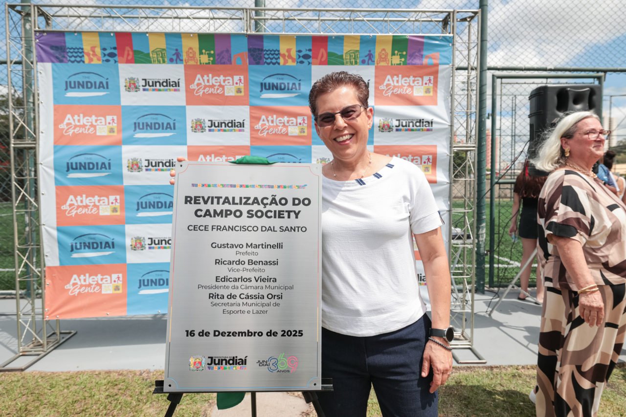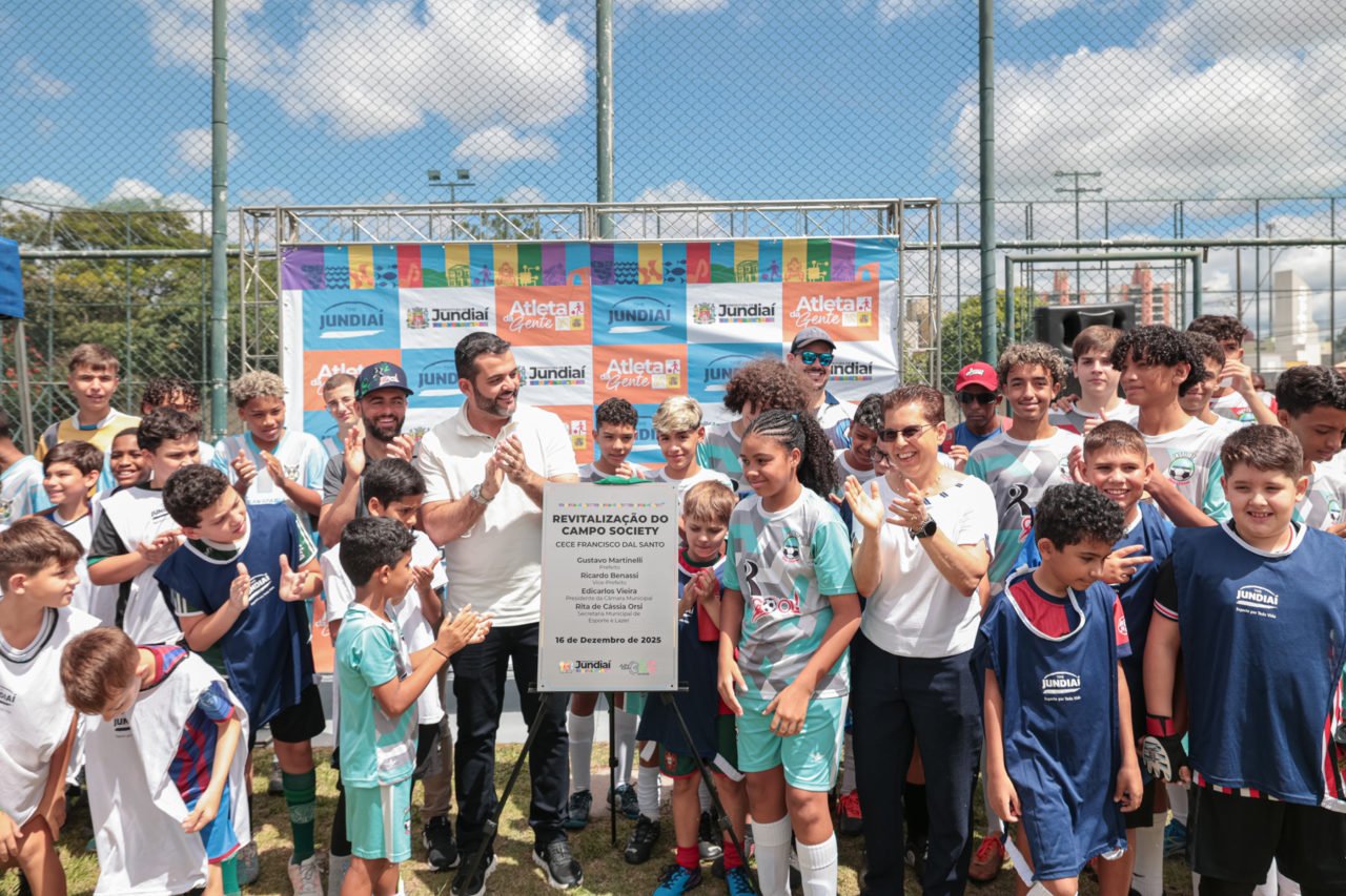 A Prefeitura de Jundiaí entregou, na manhã deste sábado (20), a revitalização do Campo Society do Complexo Esportivo Francisco Dal Santo. A cerimônia reuniu moradores, frequentadores do espaço, o prefeito Gustavo Martinelli, a Secretaria Municipal de Esporte e Lazer (SMEL), autoridades e representantes da comunidade. A entrega integra e encerra a agenda comemorativa dos 369 anos da cidade.