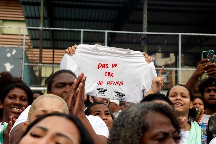 Nas ruas, a revolta explode. Moradores protestaram com faixas como “150 Mortos – Basta de Guerra!” e atos como o “Chega de Massacre”, com mais de mil motos no Alemão rumo ao Palácio Guanabara.