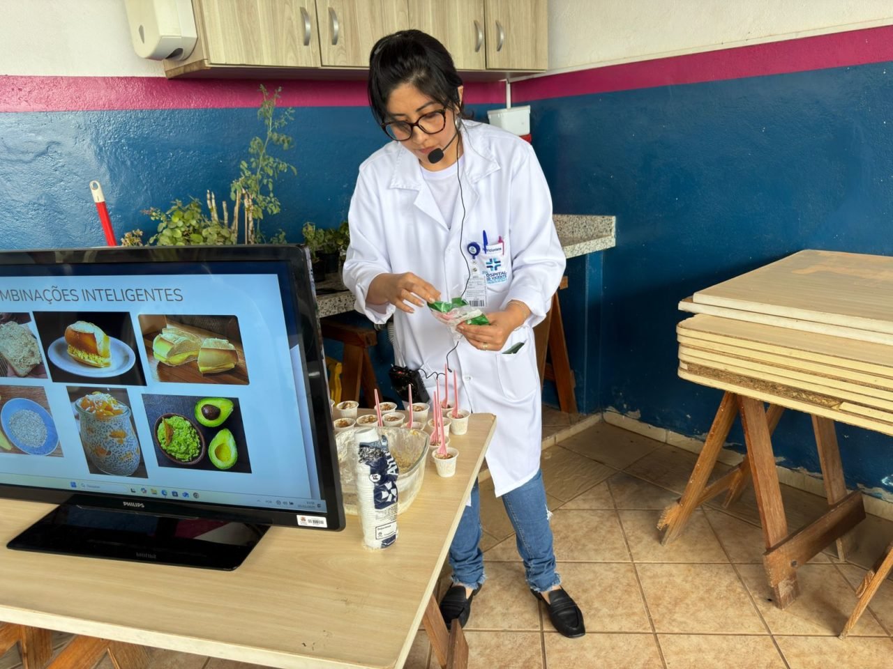 Além da entrega dos alimentos, a ação também tem caráter educativo e de promoção da saúde. Nesta semana, cerca de 30 idosos participaram de uma palestra com a nutricionista Beatriz de Carvalho, no CRAS Norte. Ela abordou temas como alimentação equilibrada, hidratação e o consumo consciente dos alimentos. “Falamos sobre os grupos alimentares, as combinações inteligentes e o papel das fibras na saúde. Também preparamos uma degustação com o pudim de chia, feito com banana e iogurte natural, uma alternativa saudável e acessível para o dia a dia”, explicou Beatriz.