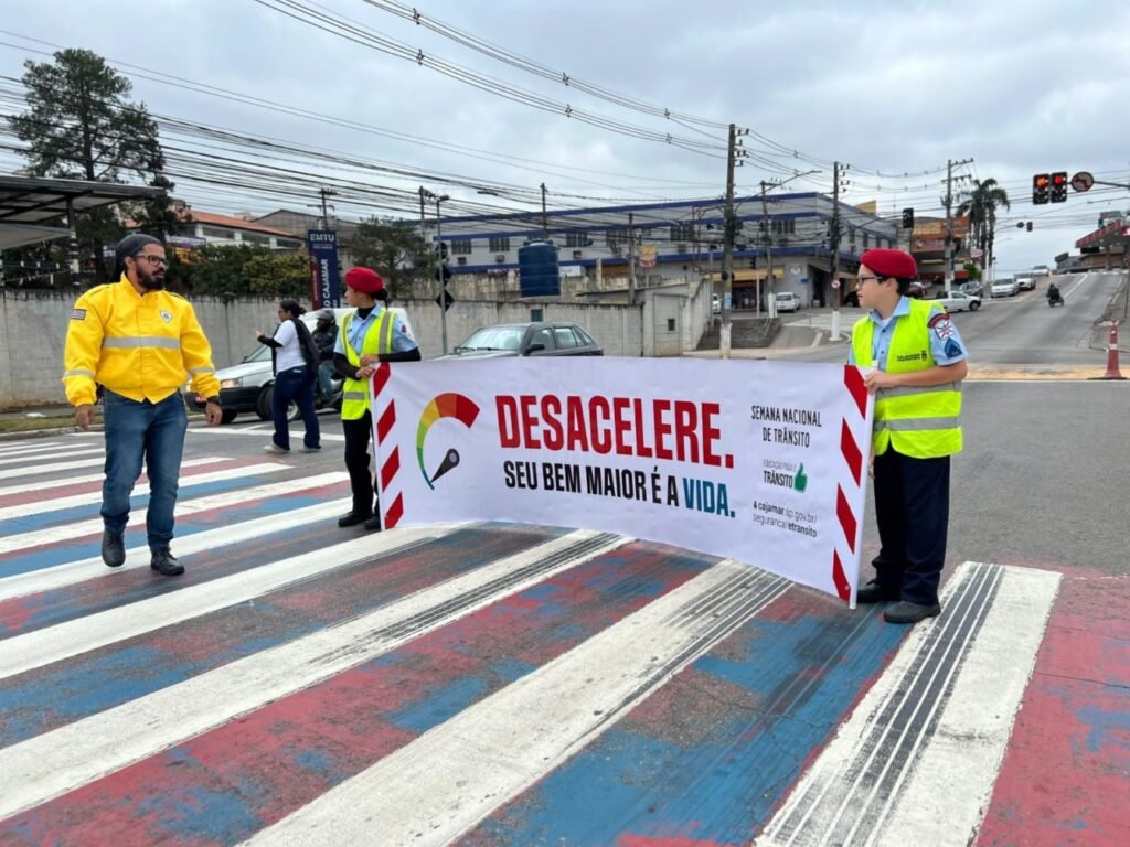 Prefeitura mobiliza órgãos municipais em ação educativa no Polvilho, ecoando o tema nacional da Semana do Trânsito 2025 e alertando para os perigos da velocidade excessiva em um país que registra milhares de mortes anuais nas vias.