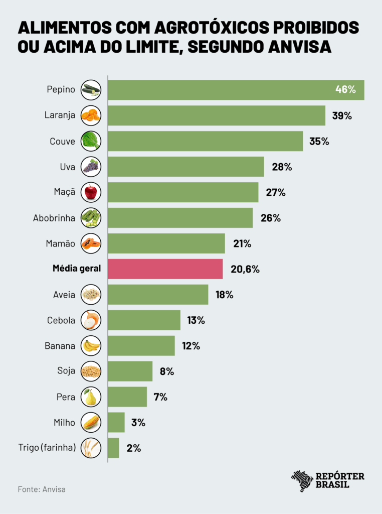 The post Pepino e laranja são os alimentos campeões de agrotóxicos em nova análise da Anvisa appeared first on Repórter Brasil.