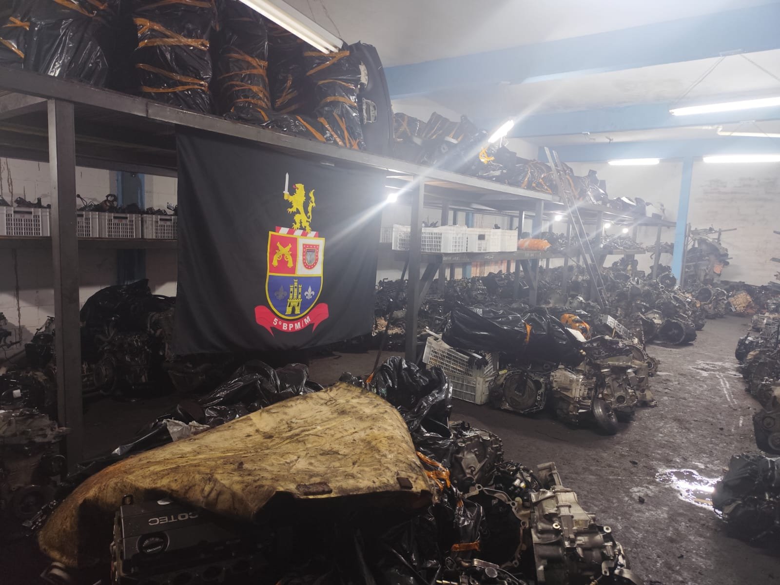 Sete pessoas foram presas em flagrante ao serem surpreendidas com diversas peças automotivas sem procedência comprovada. Entre as apreensões: módulos veiculares ligados a pelo menos seis carros furtados, dois motores com registro de roubo e celulares dos suspeitos. Um oitavo indivíduo escapou pelos fundos do imóvel ao notar a aproximação das viaturas, mas já é procurado.