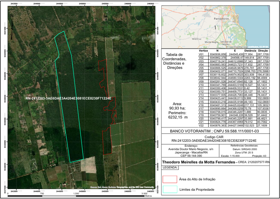 28/12/2020: A área de risco socioambiental do Banco Votorantim identificou a existência de uma área embargada dentro do imóvel em Bens não de Uso (BNDU) localizado em São José de Mipibu.