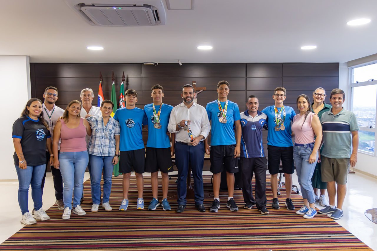 O prefeito de Jundiaí, Gustavo Martinelli, recebeu em seu gabinete os atletas Davi Mantovani, Vitor Salles, Guilherme Moreira e Gabriel Máximo, todos com 14 anos, integrantes da equipe de revezamento 4×100 metros livre do Time Jundiaí de Natação. No final de novembro, os jovens conquistaram uma medalha inédita para o município ao alcançarem o bronze no Campeonato Brasileiro Infantil, realizado no Rio de Janeiro, ficando a apenas cinco centésimos da equipe do Minas Tênis Clube, segunda colocada.