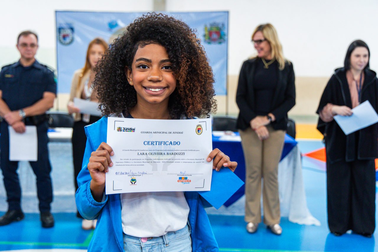 Alunos da EMEB Joaquim Candelário de Freitas, no bairro Cidade Luiza, se formaram, nesta semana, no programa Ludicidadania, desenvolvido pela Guarda Municipal de Jundiaí (GMJ) em parceria com a Secretaria Municipal de Educação. Foi a primeira turma a receber os certificados em 2025.