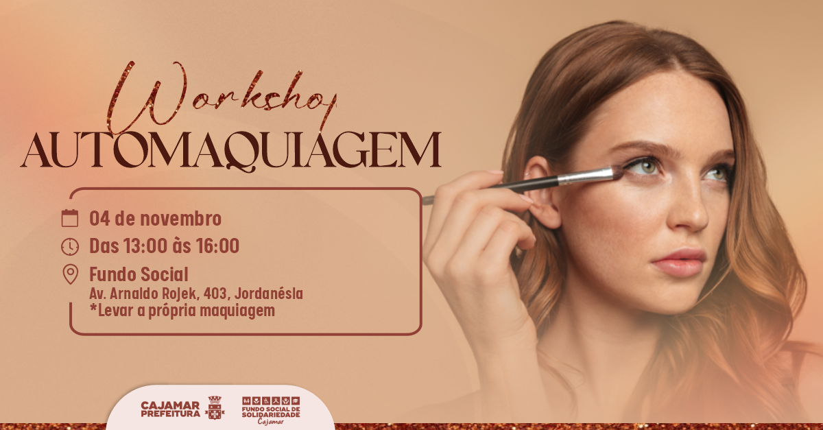 Cajamar, 1º de novembro de 2025 – Imagine sair de casa todos os dias com uma maquiagem impecável, personalizada e que realça exatamente o que você tem de mais bonito? Essa realidade está ao alcance de qualquer mulher a partir de 16 anos: o Fundo Social de Solidariedade (FSS) de Cajamar abriu inscrições gratuitas para o Workshop de Automaquiagem, que acontece na próxima terça-feira, 4 de novembro, das 13h às 16h, no próprio auditório do FSS.