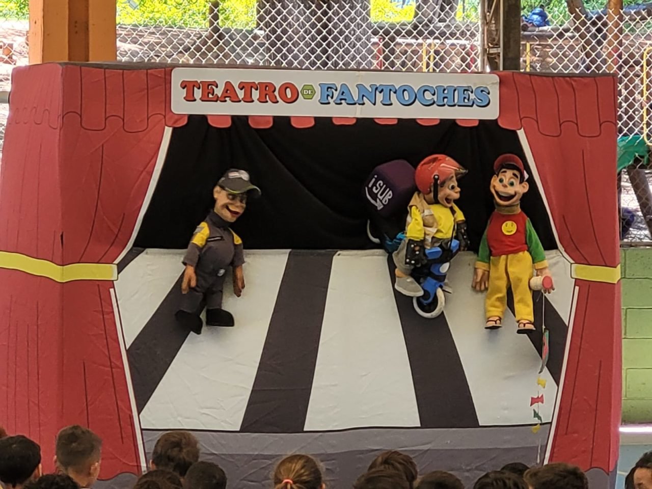 Teatro de fantoches passa aos alunos, de forma lúdica, dicas sobre respeito às leis de trânsito e à sinalização
