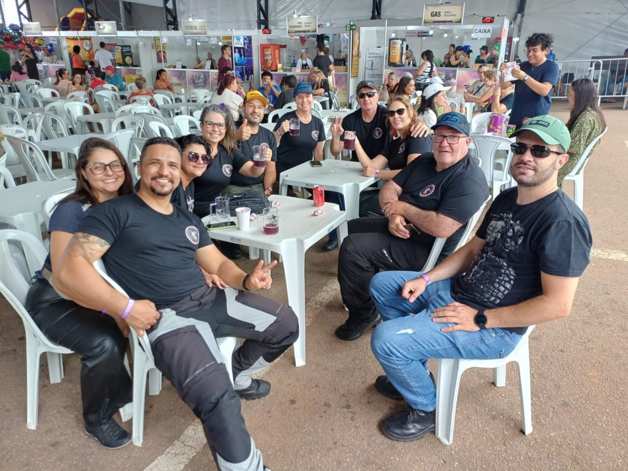 Edson (ao fundo, de boné e óculos escuros) e seus colegas do Águias Moto Grupo, que vieram de Piracicaba para curtir a Festa da Uva